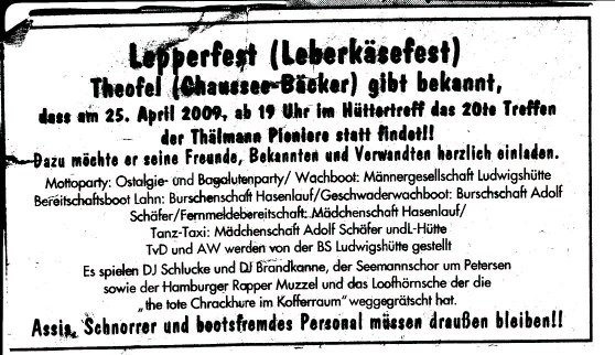 am kommenden Samstag feiert unser Reiter Theofel sein Lepperfest (siehe Anhang).